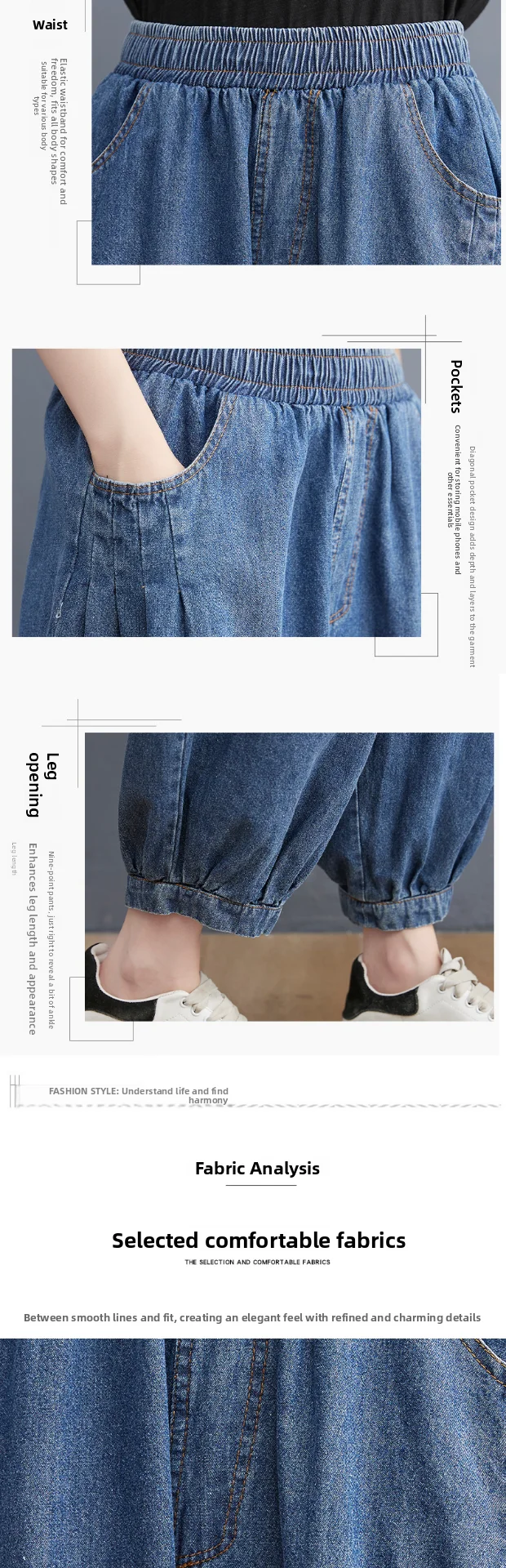 These loose-fit lantern denim pants bring effortless style and comfort together. Designed with a relaxed harem silhouette and an elastic waistband, they offer plenty of room to move while maintaining a flattering shape. The lightweight denim makes them perfect for warm-weather days, and the ankle-length cut adds a modern, streetwear-inspired look. Finished with practical pockets, these pants are ideal for everyday wear, travel, errands, or laid-back summer outfits.