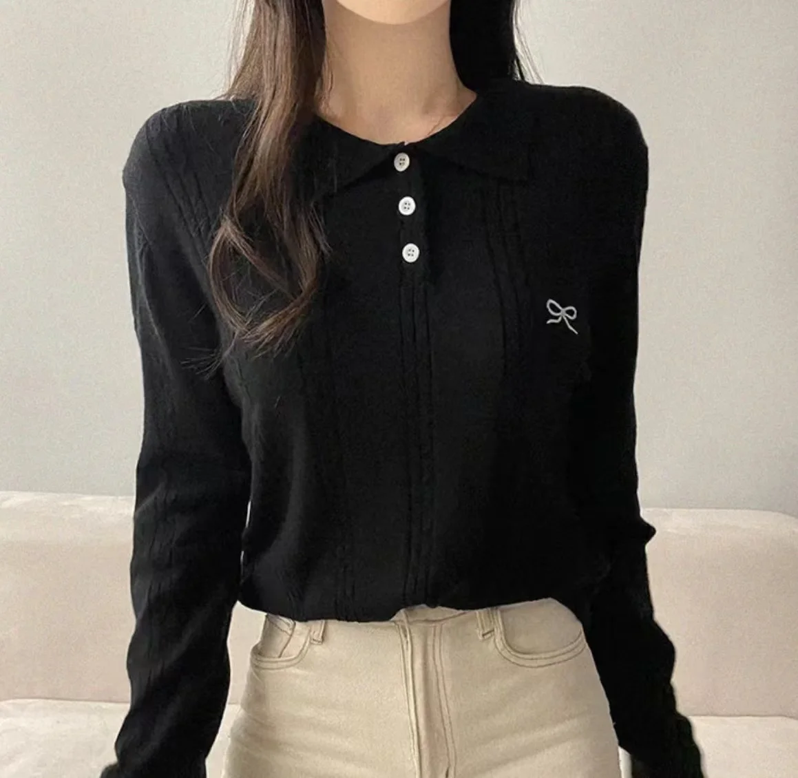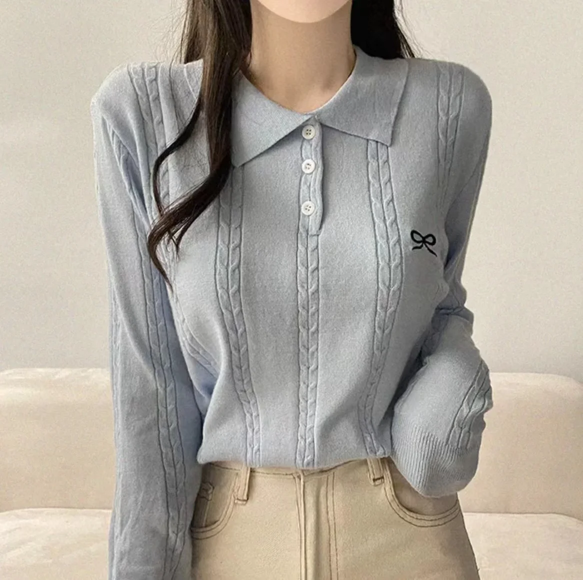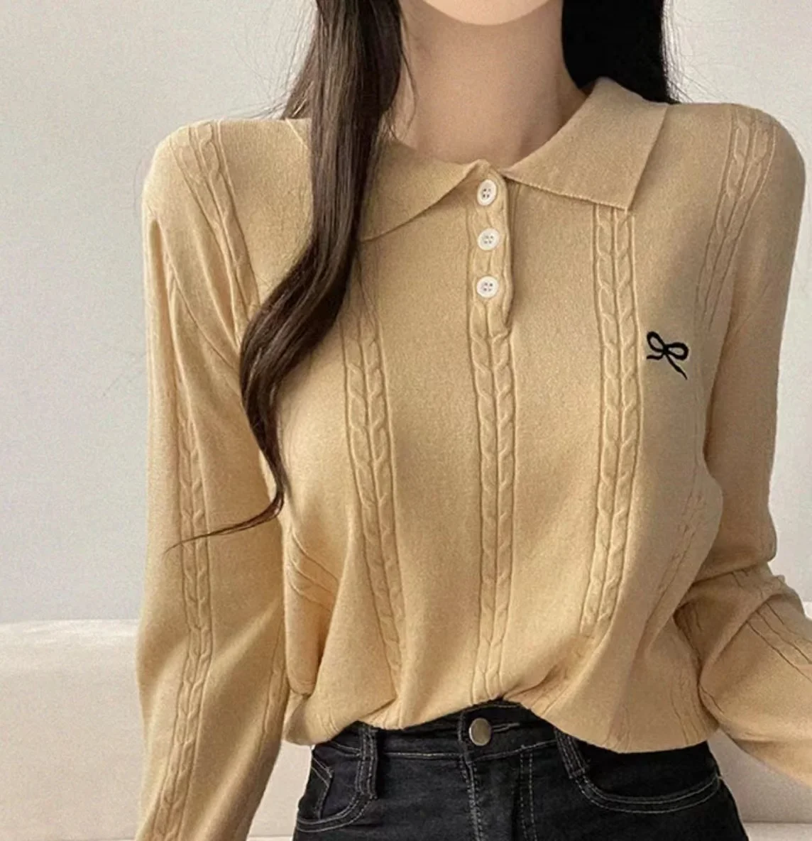 This embroidered long sleeve sweater combines timeless elegance with everyday comfort. The premium nylon construction delivers a soft, durable fabric that moves with you, while the intricate French embroidery—featuring a delicate butterfly knot motif—adds refined sophistication. Its solid color palette ensures effortless styling across your wardrobe. Cut in a relaxed Korean silhouette with extended sleeves, it provides generous warmth and movement perfect for autumn and winter layering. An understated yet distinctive piece that transitions seamlessly from casual days to evening occasions.